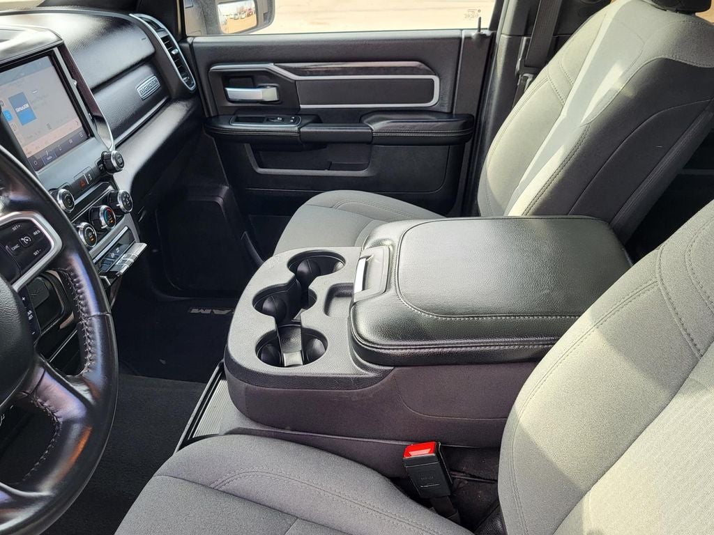 2nd Row In Floor Storage Bins, 4G LTE Wi-Fi Hot Spot, 8.4 Touchscreen Display, Apple CarPlay, Auto Power-Folding Mirrors, Big Horn IP Badge, Black Exterior Mirrors, Bluetooth® Handsfree Phone & Audio, Center Hub, Connectivity - US/Canada, Dual Glove Boxes, Exterior Mirrors Courtesy Lamps, Exterior Mirrors w/Heating Element, Exterior Mirrors w/Supplemental Signals, Foam Bottle Insert (Door Trim Panel), Footwell Courtesy Lamp, For Details, Visit DriveUconnect.com, For More Info, Call 800-643-2112, Forward & Reverse Utility Lights, Front Fog Lamps, Global Telematics Box Module (TBM), Glove Box Lamp, Google Android Auto, GPS Antenna Input, Integrated Center Stack Radio, Integrated Voice Command w/Bluetooth®, Leather Wrapped Steering Wheel, Level 1 Equipment Group, Locking Lower Glove Box, Mirror Running Lights, Power Adjust Mirrors, Power Adjustable Convex Aux Mirrors, Power Heated Fold Telescope Mirrors, Power Telescoping Mirrors, Premium Cloth 40/20/40 Bench Seat, Quick Order Package 2GZ Big Horn, Quick Order Package 2HZ Big Horn, Radio: Uconnect 5 W w/8.4 Display (A62), Rear Dome w/On/Off Switch Lamp, Selectable Tire Fill Alert, SiriusXM Radio Service, SiriusXM Satellite Radio, Steering Wheel Mounted Audio Controls, Wheels: 18 x 8.0 Polished Aluminum.