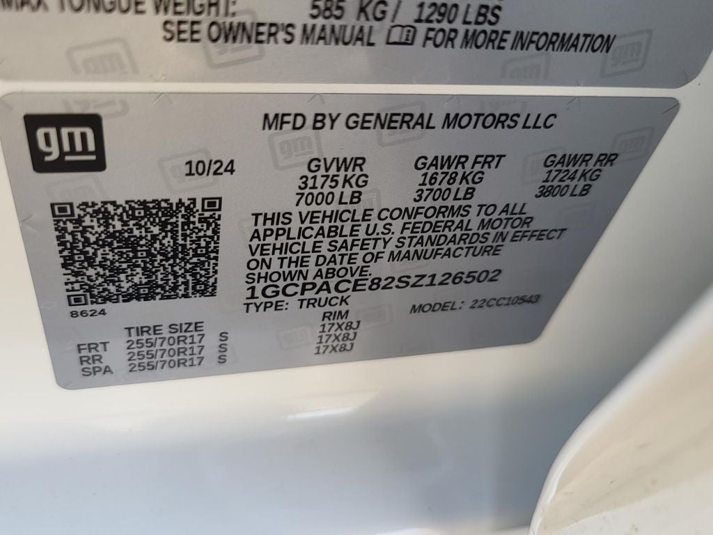 10-Speed Automatic, Black Cloth, 10-Way Power Driver Seat w/Lumbar, 12.3 Multicolor Reconfigurable Digital Display, 120-Volt Interior Power Outlet, All-Star Edition, Auto-Locking Rear Differential, Bluetooth® For Phone, Chrome Mirror Caps, Color-Keyed Carpeting Floor Covering, Convenience Package, Convenience Package II, Deep-Tinted Glass, Dual Rear USB Ports (Charge Only), Dual-Zone Automatic Climate Control, Electronic Cruise Control, EZ Lift Power Lock & Release Tailgate, Front Frame-Mounted Black Recovery Hooks, Front Rubberized Vinyl Floor Mats, HD Rear Vision Camera, HD Surround Vision, Heated Driver & Front Outboard Passenger Seats, Heated Power-Adjustable Outside Mirrors, Heated Steering Wheel, Hitch Guidance w/Hitch View, In-Vehicle Trailering System App, Inside Rear-View Mirror w/Tilt, Integrated Trailer Brake Controller, Keyless Open & Start, LED Cargo Area Lighting, Manual Tilt/Telescoping Steering Column, OnStar Services Capable, Perimeter Lighting, Power Front Windows w/Driver Express Up/Down, Power Front Windows w/Passenger Express Down, Power Rear Windows w/Express Down, Power Sliding Rear Window w/Rear Defogger, Preferred Equipment Group 1LT, Rear 60/40 Folding Bench Seat (Folds Up), Rear Cross Traffic Braking, Rear Pedestrian Alert, Rear Rubberized-Vinyl Floor Mats, Remote Start Package, Safety Package, SiriusXM w/360L Trial Subscription, Standard Suspension Package, Standard Tailgate, Steering Wheel Audio Controls, Teen Driver, Tire Pressure Monitoring System, Trailer Camera Provisions, Trailer Side Blind Zone Alert, Trailering Package, Ultrasonic Front & Rear Park Assist, Universal Home Remote, Wrapped Steering Wheel.